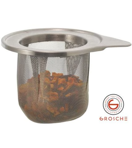 The Grosche Laval stainless steel Infuser is perfect for any cup, mug, or small teapot. The Laval is suitable for all loose leaf teas and won’t allow leaves to seep into your tea. It is made from 18-8 stainless steel and can hold enough loose leaf tea for 1-2 steeps. It is easily removable with the lip of the infuser.