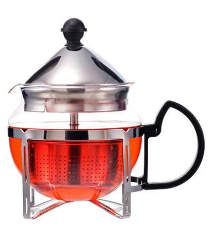 The Preston is a personal teapot with a very interesting design. It is perfect for steeping and removing the tea as you please due to the stainless steel infuser. You can place the infuser down inside the teapot and then as you lift the handle, you can lift the infuser up and out of your steeped tea. The stainless steel lid sits snugly in the teapot for easy pouring and the borosilicate, heat-resistant glass pot sits in a stainless steel base.