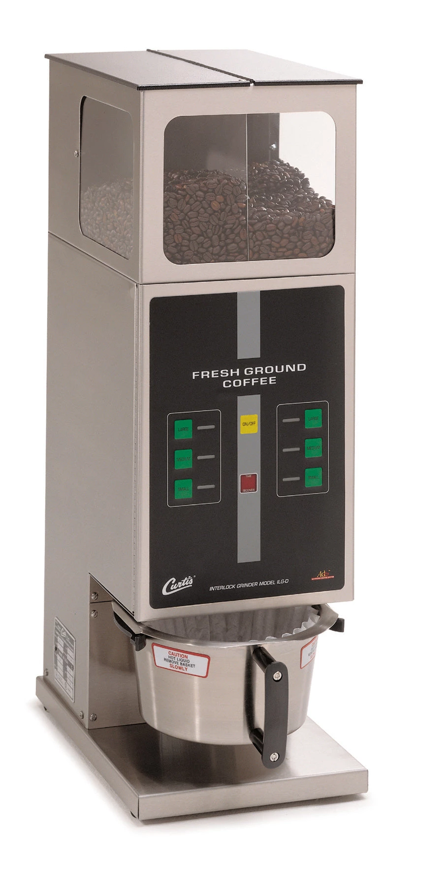 Thanks to its innovative digital interlock technology, this Curtis ILGD-10 twin 7.5 lb. coffee grinder makes it easier than ever to offer fresh ground and fresh brewed coffee at your cafe or coffee shop. This grinder is designed to link with Gemini and ThermoPro series brewers with 3 batch capabilities, and the controls automatically select the brewing cycle to correspond with your selected grind quantity at the press of a single button! An easy to read, programmable display further eases operation, and since it has (2) 7.5 lb. hoppers you can offer fresh-ground decaf or specialty coffee, in addition to your house blend.