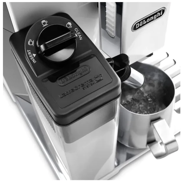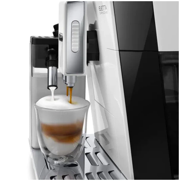 Design your espresso experience in one touch with the De’Longhi digital super automatic machine. Enjoy barista quality espresso drinks; Cappuccino, Latte, Italian Macchiato & more, design to deliver the richest, thickest longest lasting foam. The Automatic Cappuccino System includes an integrated milk container with auto clean function that produces steamed milk for Latte and frothed milk for Cappuccino and Italian Macchiato. The milk container is detachable, allowing it to be placed in the refrigerator in between uses, so no milk is wasted