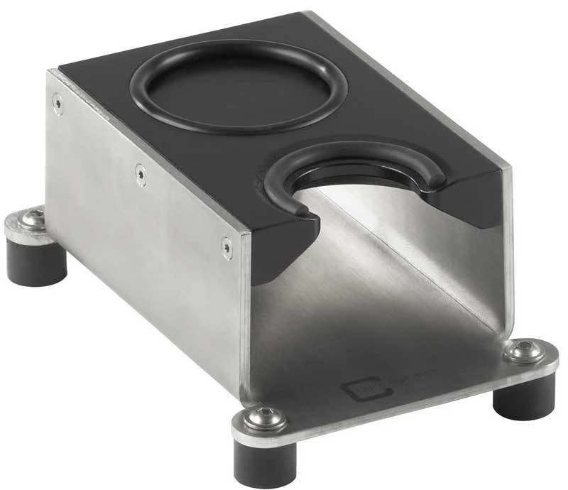 JoeFrex’s Tamping Station Exclusive is the perfect equipment for professional tamping and barista tool. The semi-circular portafilter dock with its rubber-coated edge is ideally adapted to provide stability and safety for tamping the coffee ground. The rubber ring at the rear is a neat place to park your tamper when not in use. All materials and components are hand-finished and precision-tooled. It is compact, solid and easy to use.