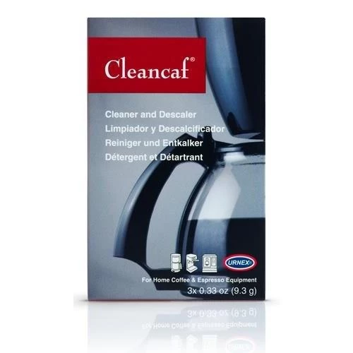 Coffee Machine Cleaning Powder Cleancaf® eliminates residual coffee oils and build-up in your machine that can become rancid and lead to bitter tasting coffee. Using Cleancaf® is as easy as brewing a pot of coffee. Each box contains three packets of cleaning powder.