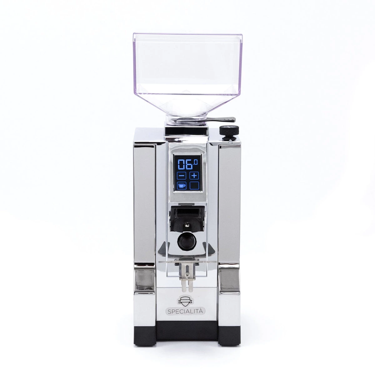 The Eureka Mignon Specialità has the highest output in Eureka’s Mignon range. Thanks to it’s 55 mm flat hardened steel burrs. The touch screen display is highly intuitive and easy to use. With its larger burrs, the Mignon Specialità can produce up to 1.8g of coffee per second for espresso, meaning it can produce a barista-quality 18g double shot in as little as 10 seconds.