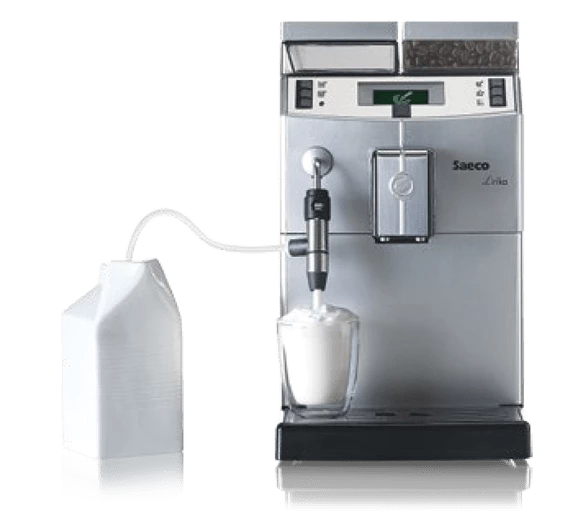 The Saeco Lirika Plus includes a milk frother, which draws milk through a food-safe silicone tube, allowing you to add a foamy layer to your espresso after brewing.